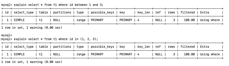 explain select col2 from t1 where col1 in ('ab', 'ac', 'as')