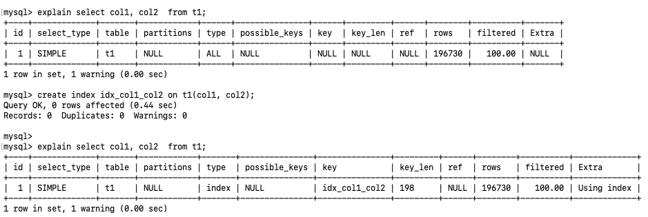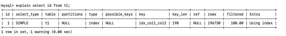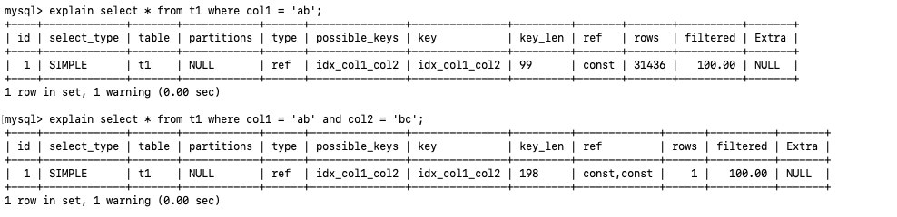 explain select * from t1 where col1 = 'ab' and col2 = 'bc';