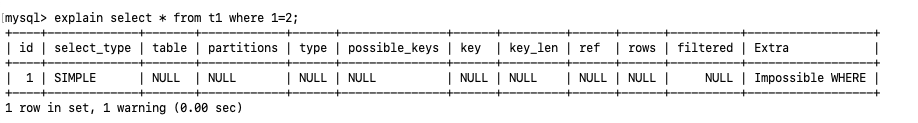 表只有一行记录(等于系统表),这是 const 类型的特列, 平时不会出现,这个也可以忽略不计