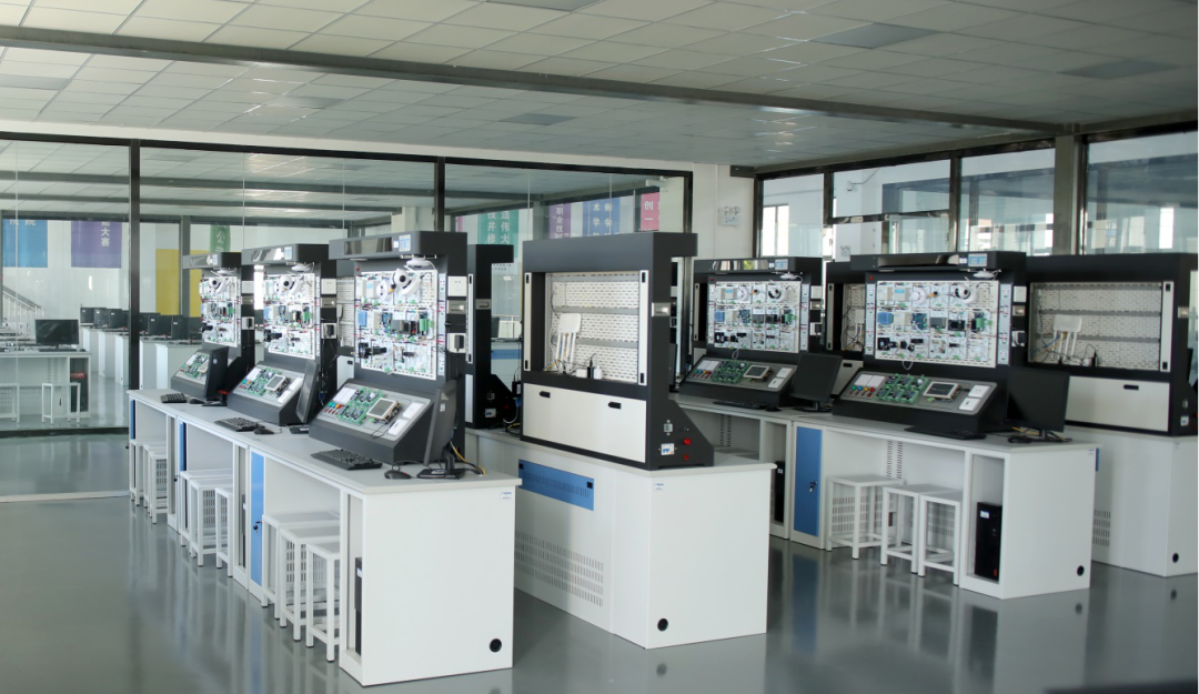 用于物联网应用技术(工业互联网方向)专业《单片机与传感器》《识别技术与应用》《无线通信技术》《嵌入式系统设计与应用》教学实训。可作为机电一体化、计算机应用技术等专业的共享技术课程。该实训区围绕工业互联网设备安装部署、组网调试、到网关应用程序开发、平台接口应用程序开发、系统测试与总结等技能进行综合实训。采用工业互联网综合应用实训台,实现设备运行状态检测、设备运动控制、设备的反馈控制、平台设备管理、数值统计分析等功能,培养从硬件安装部署、布线组网调试、到网关应用程序开发、平台接口应用程序开发、最后到系统测试与总结等综合实践技能。用于物联网应用技术专业(工业互联网方向)《工业互联网综合应用实践》课程,可作为计算机应用技术、自动化、机电一体化等技术共享课程。该实训区建设内容包含异音监测设备、高铁轮对设备、声象仪、声学识别设备故障实训系统、工业能耗仿真系统、能耗监测模组,可完成工业大数据方向项目实训课程的教学与相关培训。针对物联网应用技术(大数据方向)、大数据、人工智能、计算机应用技术、计算机网络技术开展《声学识别设备故障实训》《能源管理实训》课程教学,同时可开展真实工业生产场景的项目培训。《声学识别设备故障实训》课程可作为动车组检修技术专业群的技术共享课程。本中心包含工业互联网智能展板、主流技术展示系统、互动地幕多媒体展示系统、热像数字孪生系统等,完整展示工业互联网体系架构及其发展历史和物联网、大数据、人工智能、区块链等未来主流科技。该活动区作为办公、实训、竞赛、评比、拓展的活动场所,采用开放式设计,内部所有的设施均不固定,即可休闲交流,也可以作为临时拓展活动的场所。