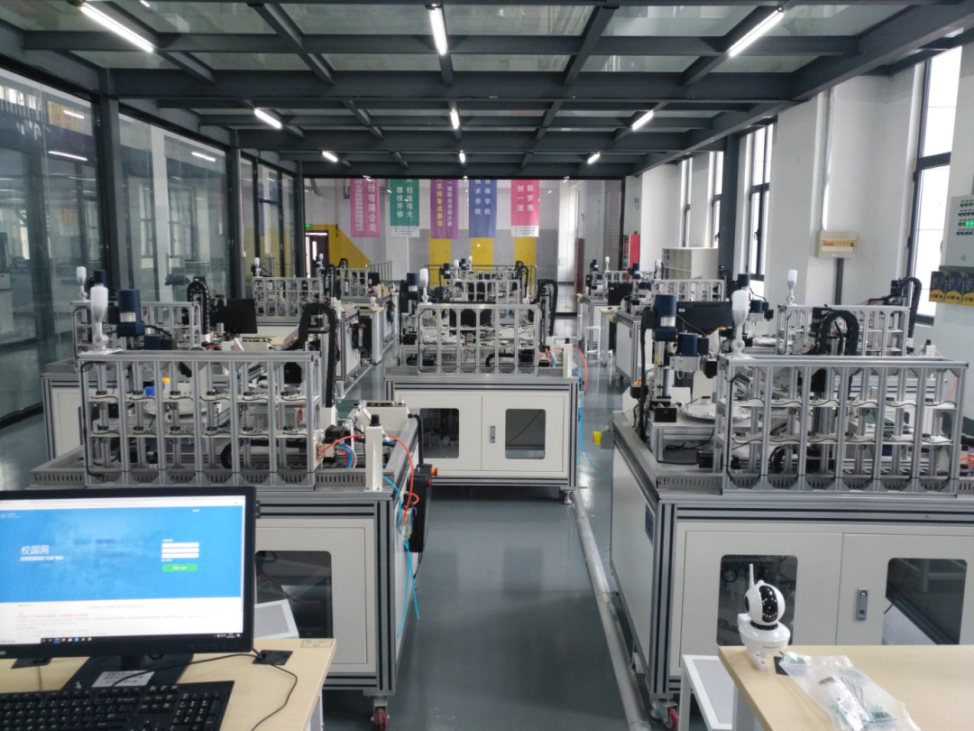 该项目建设工业互联网公共实训中心,建设面积约1000㎡,设置6个功能区域,制作18门专业核心及实训课程资源,相关实训设备百余套。所建设内容均来自工业产业中正在建设的真实项目案例,将工业互联网、机器视觉、数字孪生、声学识别、设备异常诊断、5G通信、声学\热学成像等最前沿的技术概念引入到学院,真正的做到产教融合,赋能教育。