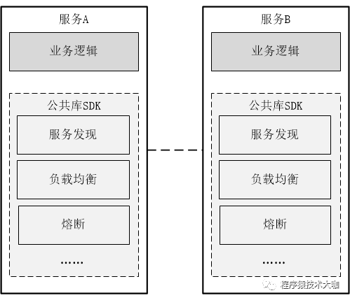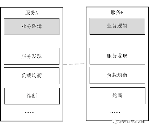 基础设施功能(如,服务发现,负载均衡、熔断等)和业务逻辑高度耦合。 每个微服务都重复实现了相同功能的代码。 管理困难。如果某个服务的负载均衡发生变化,则调用它的相关服务都需要更新变化。 开发者不能集中精力只关注于业务逻辑开发。
