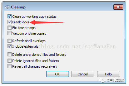 2. 在Cleanup对话框中勾选“Break locks”,点击OK按钮