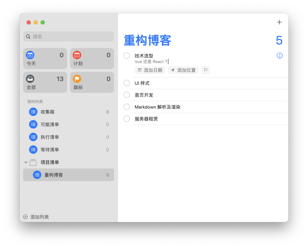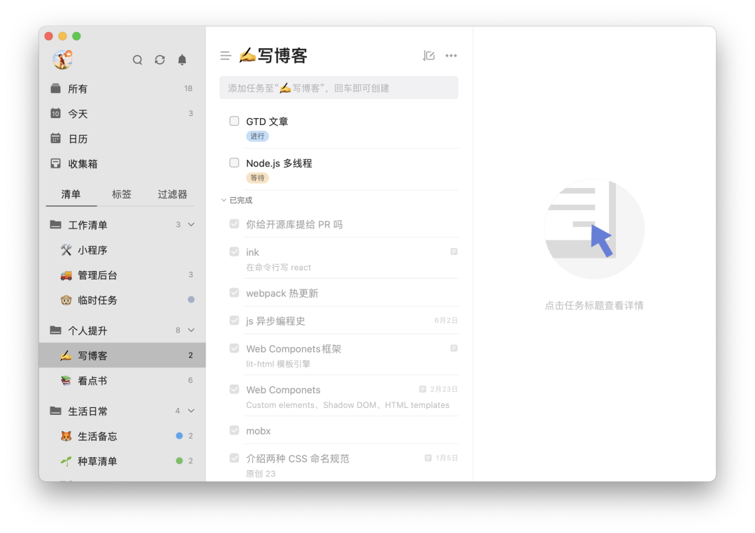 mac 的提醒事项比较好上手,但是还是缺少一些智能化的功能。推荐我用了两年的 滴答清单