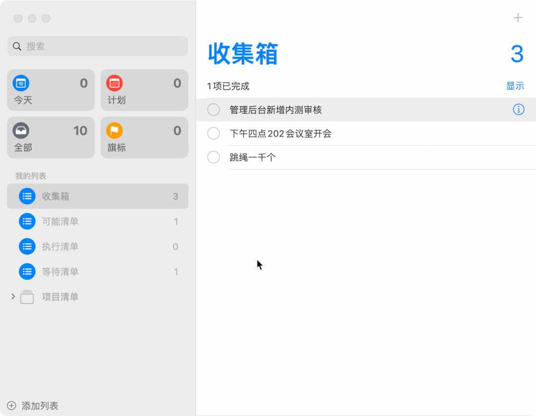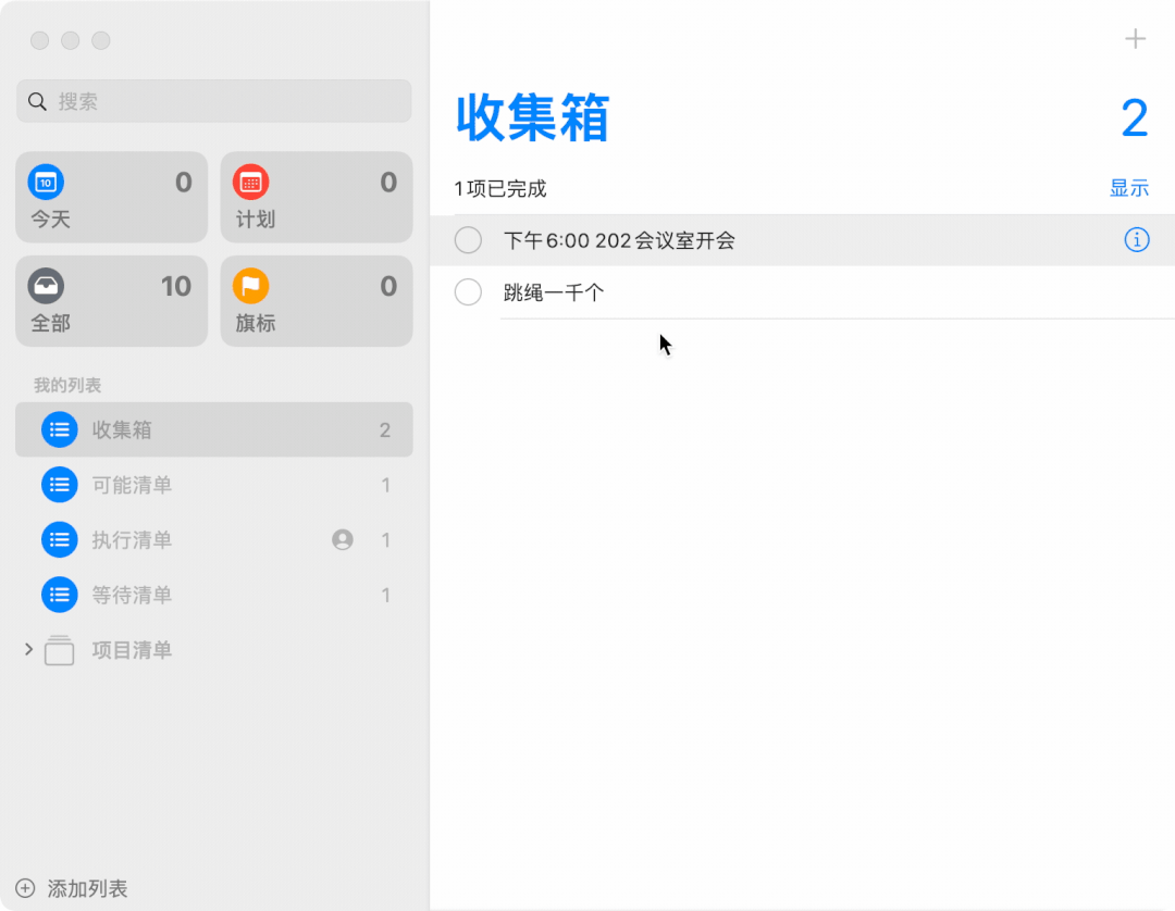 接下来会通过 mac 的提醒事项来演示 GTD 的流程,将提醒事项中的默认列表修改为收集箱