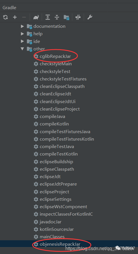 找到 Gradle>spring-core>Tasks>other下面的两个工具,双击运行