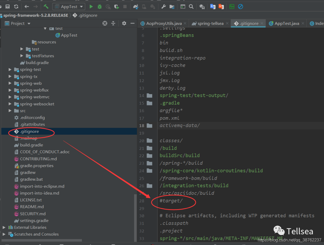 这时,target目录出来了,但是变成了灰色,修改项目根目录下的.gitignore