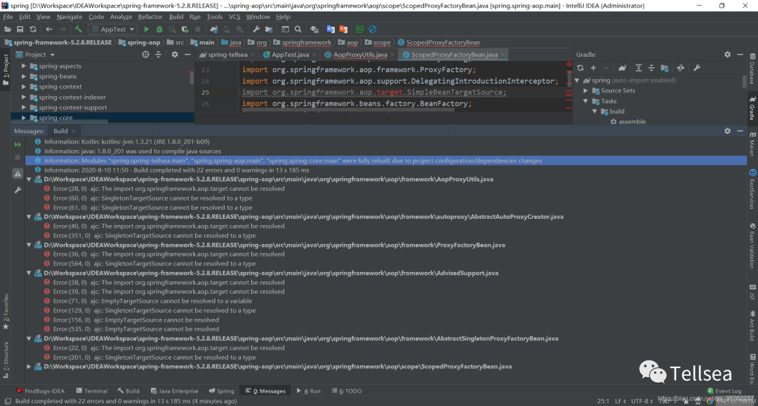 (5)报错:找不到 import org.springframework.aop.target.SingletonTargetSource;