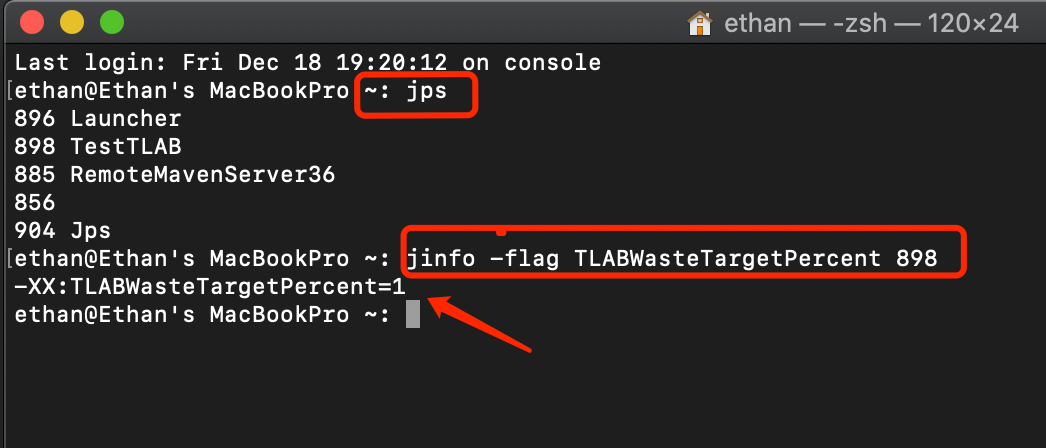 TLAB区域存在于Eden区,每一个线程所占用的TLAB空间仅为Eden区的1%,可运行一个Java程序后,命令行输入以下命令查看