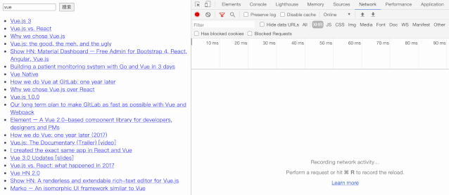 Hacker News 的查询接口有一个 query 参数,前面的案例中,我们将这个参数固定了,现在我们通过响应式的数据来定义这个变量。