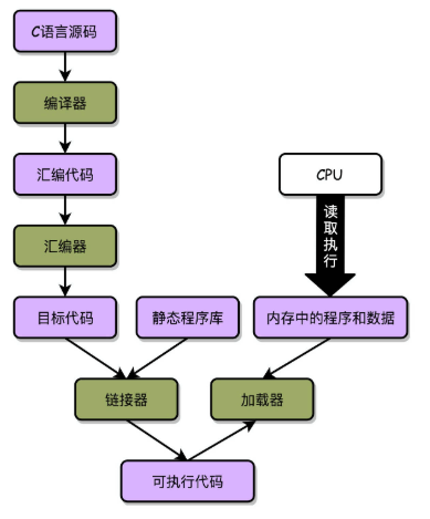 接着由加载器加载到内存中然后CPU才开始从内存获取指令或者数据进行处理。可执行文件根据操作系统的不同格式也不同,比如 Linux 系统连接器生成的可执行文件是ELF格式的,而 Windows 下的可执行文件是PE格式的。不同的操作系统的加载器解析的文件格式又不一样,因此即使是指令集相同的同一款CPU,C语言也无法在Windows编译后在Linux下运行。
