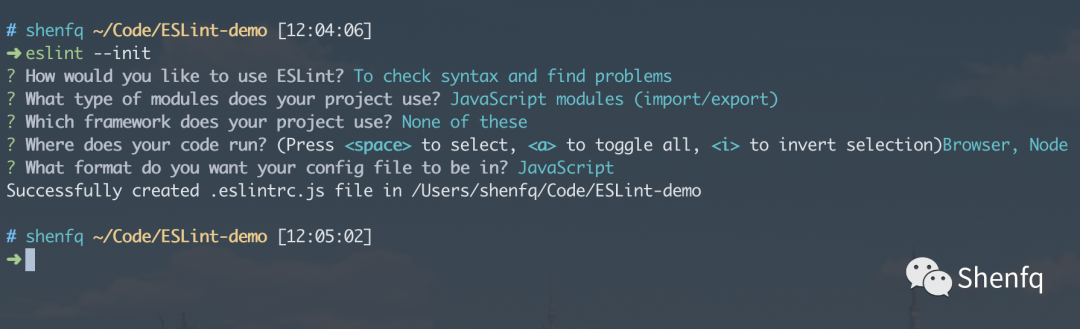 在初始化过程中,有一个选项就是使用什么文件类型进行 lint 配置(What format do you want your config file to be in?