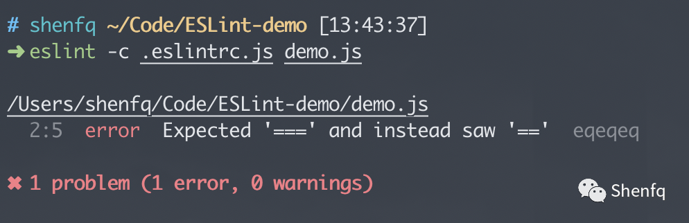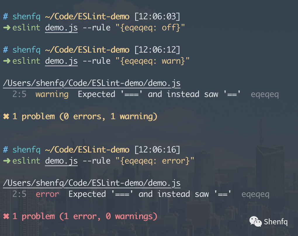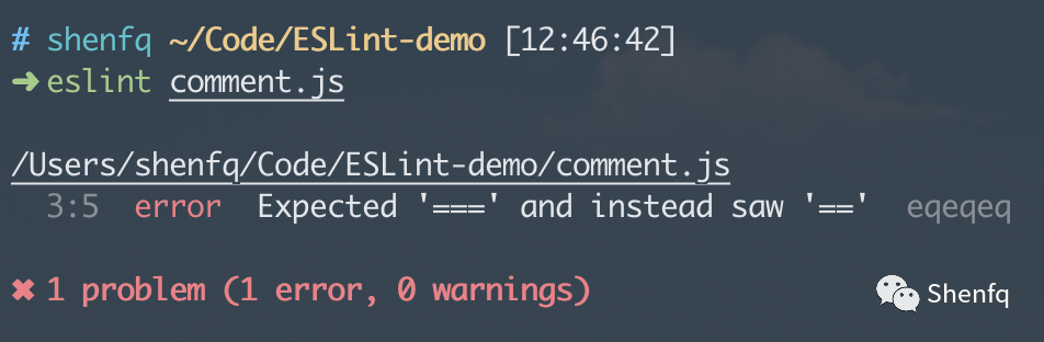 方法,告诉 ESLint 这是一段有问的代码,具体要怎么处理,就要看 ESLint 配置中,该条规则是 [off, warn, error]
