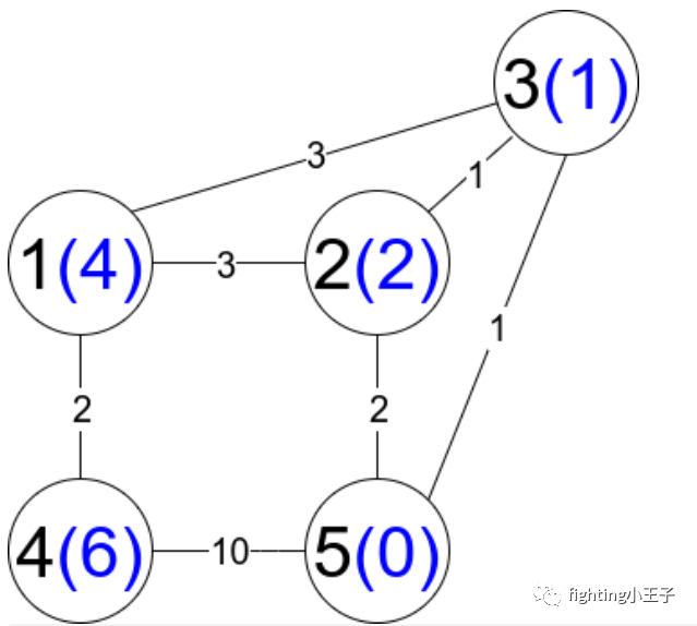 输入:n = 5, edges = [[1,2,3],[1,3,3],[2,3,1],[1,4,2],[5,2,2],[3,5,1],[5,4,10]]输出:3解释:每个圆包含黑色的节点编号和蓝色的 distanceToLastNode 值。三条受限路径分别是:1) 1 --> 2 --> 52) 1 --> 2 --> 3 --> 53) 1 --> 3 --> 5
