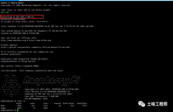 接下列用Xshell连接,根据GitHub教程,默认的用户名为pi,密码为raspberry