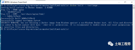 在项目根目录下执行打包镜像命令,这里直接说命令了,不仔细截图了