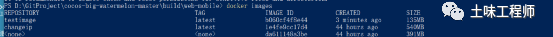 接下来在命令行输入 docker images 可以看到这个testimage镜像