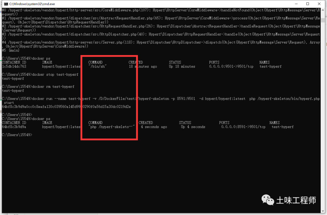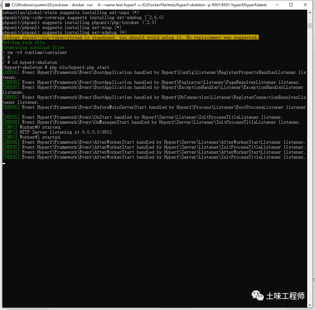 最后php /hyperf-skeleton/bin/hyperf.php start就是运行docker 容器后同时执行的命令