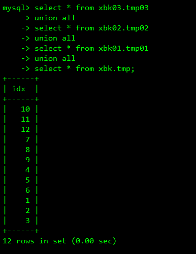 innobackupex --apply-log --redo-only /tmp/db合并xbk01到xbk,并整理备份