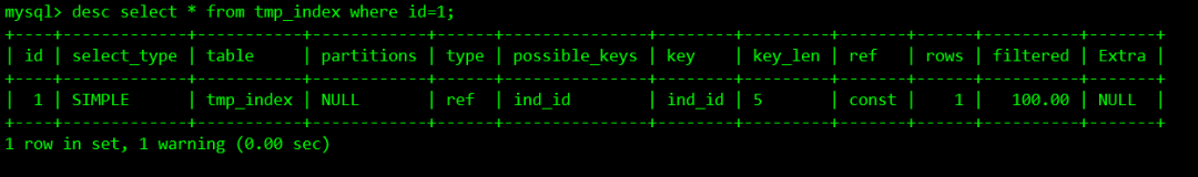 desc select * from tmp_index where id=1;