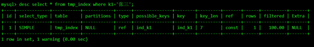 desc select * from tmp_index where k1='张三';