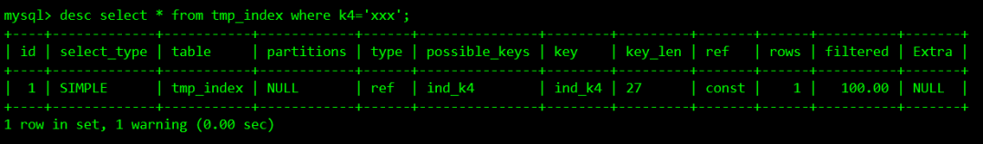 desc select * from tmp_index where k4='xxx';