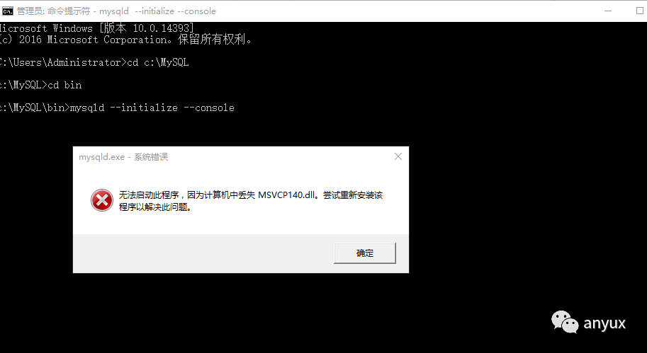 cd MySQL\bin#-----初始化数据库mysqld --initialize --console