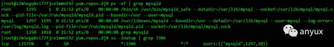 ps -ef | grep mysqldss -lnatup | grep 3306