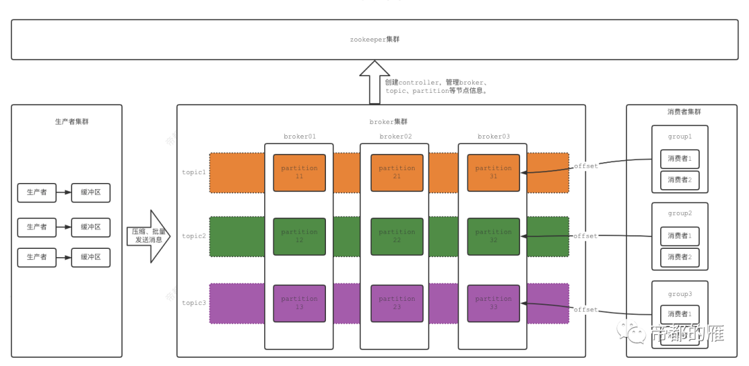 kafka的注册中心,存储broker、topic、partition、group等信息。