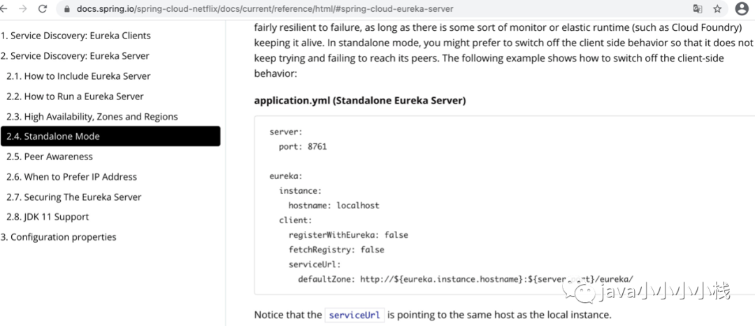 // application.ymlserver:port: 8761eureka:instance:hostname: localhostclient:registerWithEureka: falsefetchRegistry: falseserviceUrl:defaultZone: http://${eureka.instance.hostname}:${server.port}/eureka/