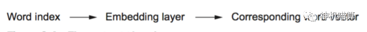 Embedding layer把词的整数索引映射为稠密向量。它输入整数,在中间字典中查找这些整数对应的向量。Embedding layer是一个高效的字典查表(见图6.4)。
