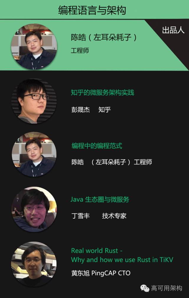大会精心策划了语言与架构专题,由知名程序员陈皓(左耳朵耗子)担任出品人,陈皓将在专题分享及对比 7 种语言的编程范式。