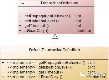 TransactionDefinition,即将事务的隔离级别、传播行为、超时等配置抽象成事务的配置定义对象。