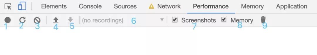 调整好之后,我们切到 Performance 面板,这里先说明一下一些按钮的作用: