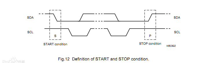 起始信号:总线SCL保持高电平,SDA从高电平降为低电平,即IIC通讯开始。