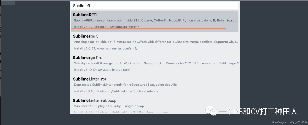 调用控制栏,然后选择 install package,==其实这些编辑器都是靠各种各样的包支持的。==