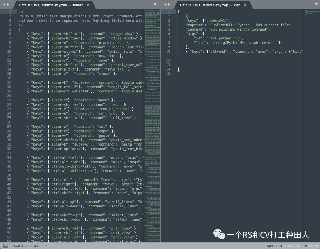 "keys": ["command+1"], //在keys输入你的快捷键