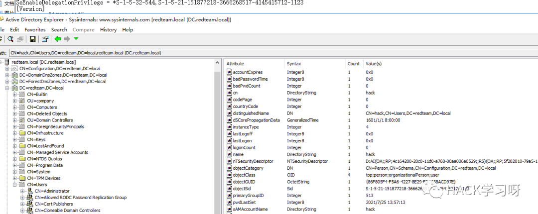 把要添加的用户的sid添加到SeEnableDelegationPrivilege然后刷新组策略