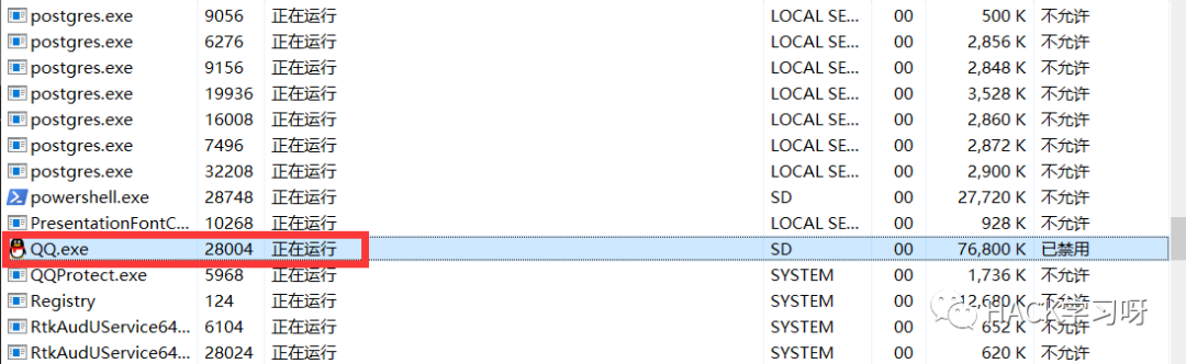 可以看到QQ进程信息已经剔除