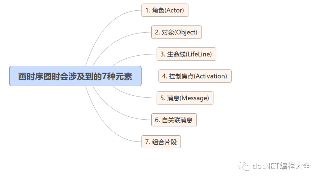 我们在画时序图时会涉及到7种元素,这7种元素如下: