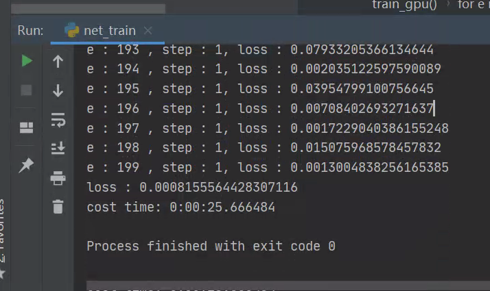 net_train.py文件提供的训练代码支持GPU训练,在没有NVDIA显卡和安装pytorch对应版本的CUDA库,默认是使用CPU训练,笔者对二种训练方式都进行了尝试,下面是训练对比情况: