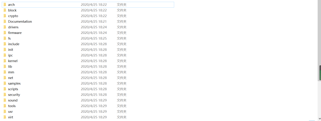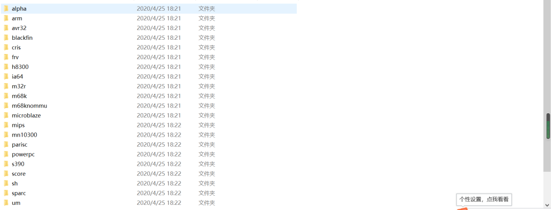 arch:arch是architecture的缩写,意思是架构。arch目录下是好多个不同架构的CPU的子目录,譬如arm这种cpu的所有文件都在arch/arm目录下,X86的CPU的所有文件都在arch/x86目录下