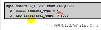 select sql_text from v$sqlarea where executions<5 order by upper(sql_text)