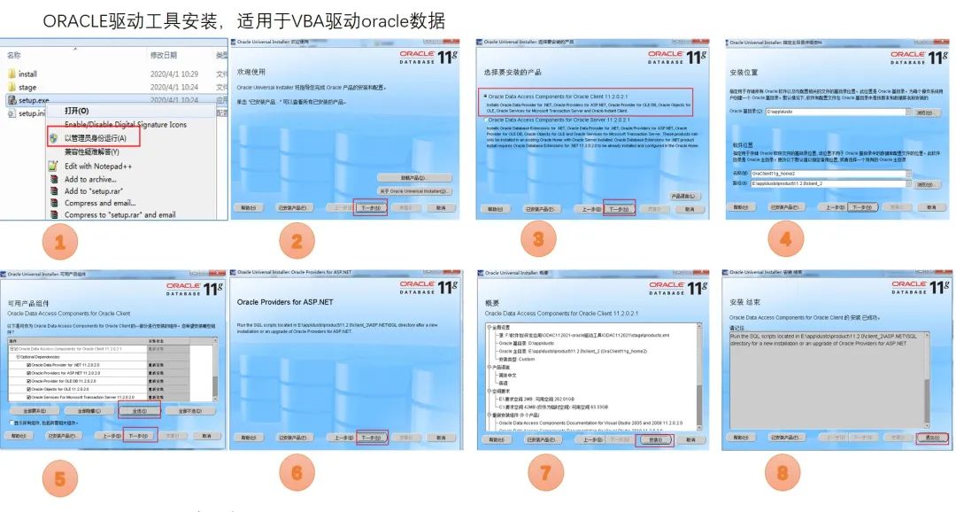 以上为VBA开发应用实例中连接ORACLE数据库方法,安装ODAC112021驱动即可,如若本地已安装ORACLE数据库服务,位数相同也是32位,那么可以不需要安装驱动,直接即可使用VBA连数据库。