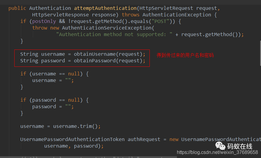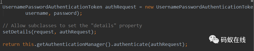 然后我们来看 UsernamePasswordAuthenticationFilter里面重写的这个方法