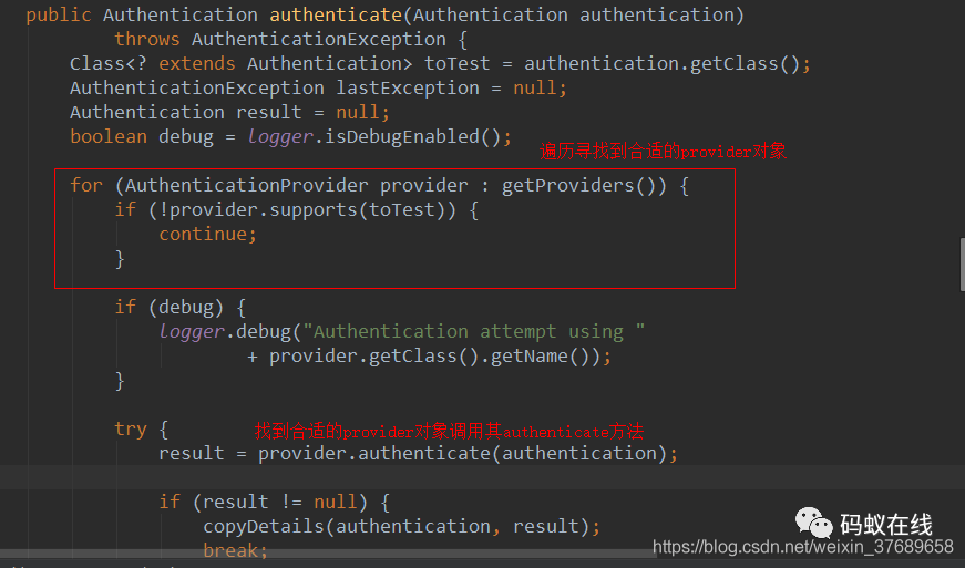 我们这里要看的是它的实现类ProviderManager,进去找到它的authenticate方法