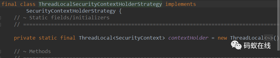 有一个ThreadLocal对象,放的是SecurityContext,我们知道ThreadLocal有线程隔离的作用,每一个对象在ThreadLocal中都是线程级别的。
