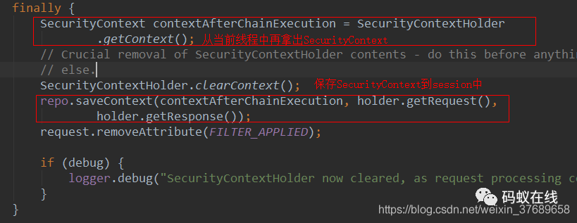 所以上面请求经过securityContextpersistenceFilter就是先从判断session是否有SecurityContext,有的话就放进当前线程中