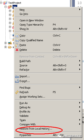 1.通过eclipse的恢复文件功能可以恢复误删除的文件