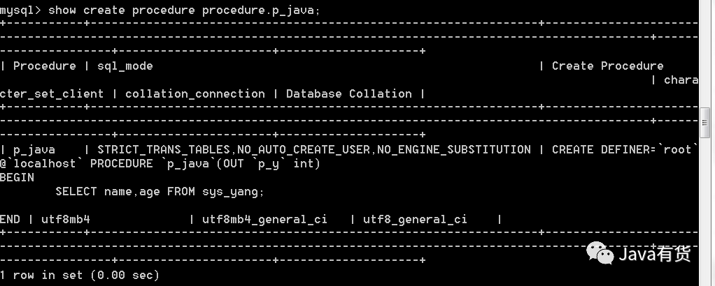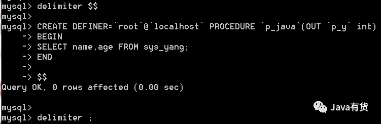 create procedure 名字1 (参数类型 返回的名字2 返回类型)